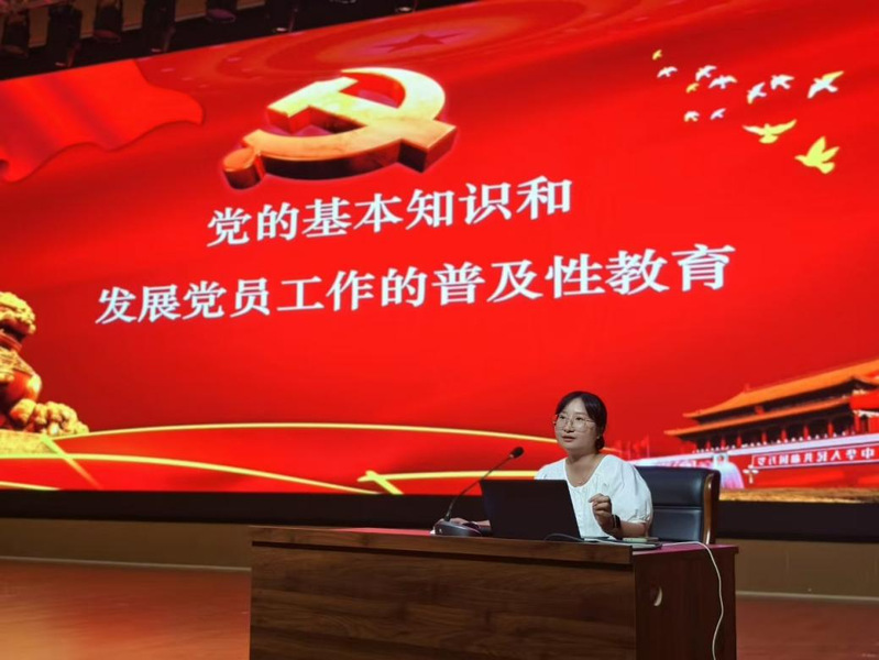 紧接着,学生科科长施婷进行了党的基本知识介绍和入党启蒙教育,深入浅出地阐释了党的性质、宗旨,以及党员的权利与义务等内容,极大激发了新生向党组织靠拢的热情,引导他们树立正确的政治信仰。