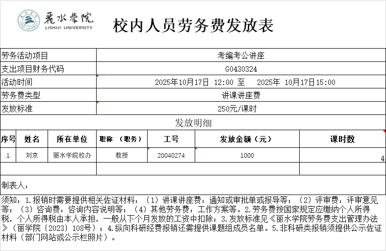 2025年10月生态学院考公考编讲座校内劳务费公示