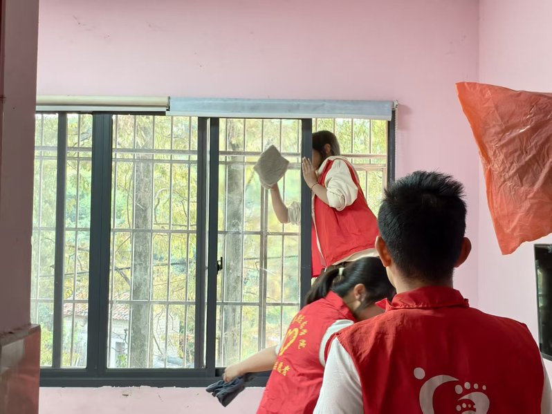 为更好服务老人,我院志愿者团队对志愿者开展专项培训,讲解与老人沟通的技巧和清洁工作的注意事项,确保活动有序开展。到达养老院后,志愿者们便积极投入志愿活动中。一部分志愿者负责扫地拖地,一部分负责擦瓷砖窗户,对老人房间、走廊、室外活动场地等区域进行打扫,擦拭蒙尘的窗户和家具,清理卫生死角,清运垃圾。看着原本略显昏暗的房间变得整洁明亮,一位老人竖起大拇指,连声向志愿者道谢。志愿者们的细心劳作,不仅消除了安全隐患,更让养老院充满了节日的整洁氛围。