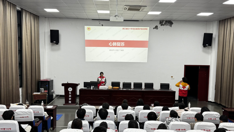 11月23日18:00,农业与生物技术学院园艺24班、园艺251等班级于博闻楼二阶教室联合开展浙江省红十字会应急培训课程,以“理论精讲+实操实训”的沉浸式教学,让全院学子在专业指导下练就应急救护真本领。