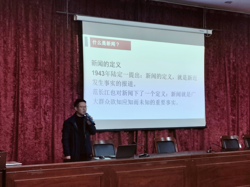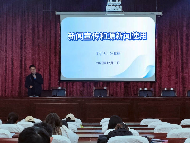 讲座伊始,叶海林以个人与新闻行业的缘分故事为导入,讲述了自己如何从一名普通学子成长为专业新闻人的心路历程,拉近了与在场学生的距离。他强调,新闻宣传不仅是专业媒体的职责,更是每个人在现代社会中都应掌握的重要技能。无论是电商创业、品牌推广,还是舆情应对与危机处理,良好的新闻素养都能发挥关键作用。“每一个单位都需要会写、会表达的人。”叶海林指出,掌握新闻写作与传播能力,已成为当代青年综合素质的重要组成部分。