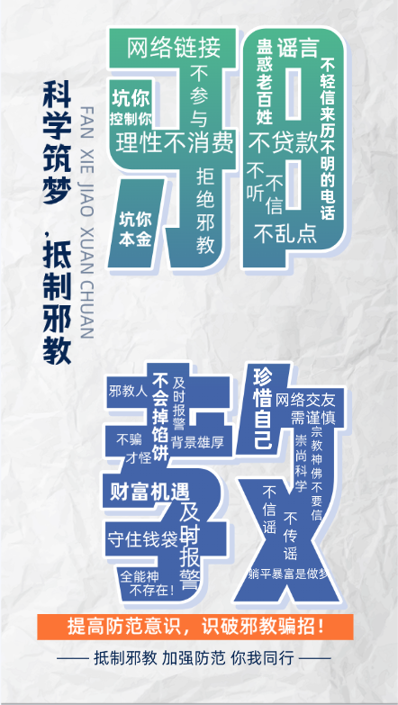 为进一步加强学生的法治教育和思想政治引领,增强学生的辨识和防范邪教的能力,近日,我院依托德涵书院组织开展了反邪教创意作品征集活动。本次活动旨在通过学生创新思维,鼓励他们通过艺术创作和创意作品,深入了解邪教的危害及防范知识,提升大家的安全防范意识。