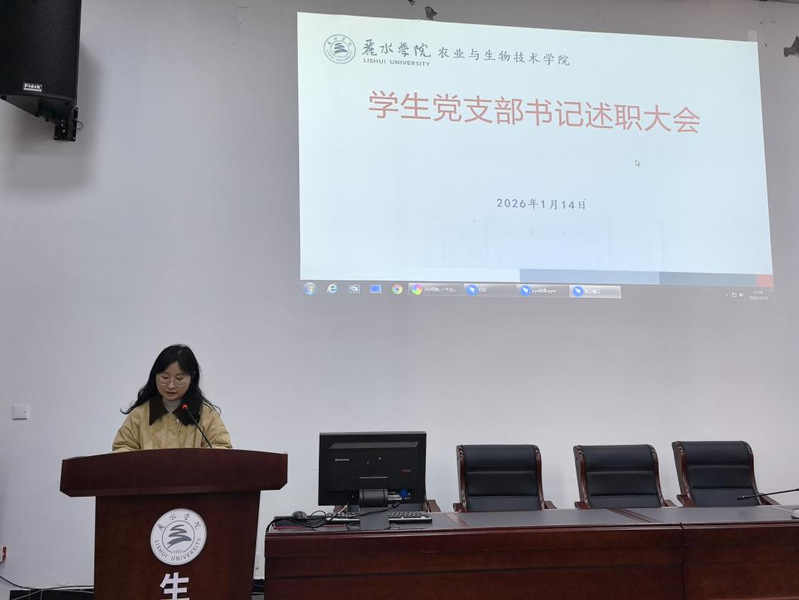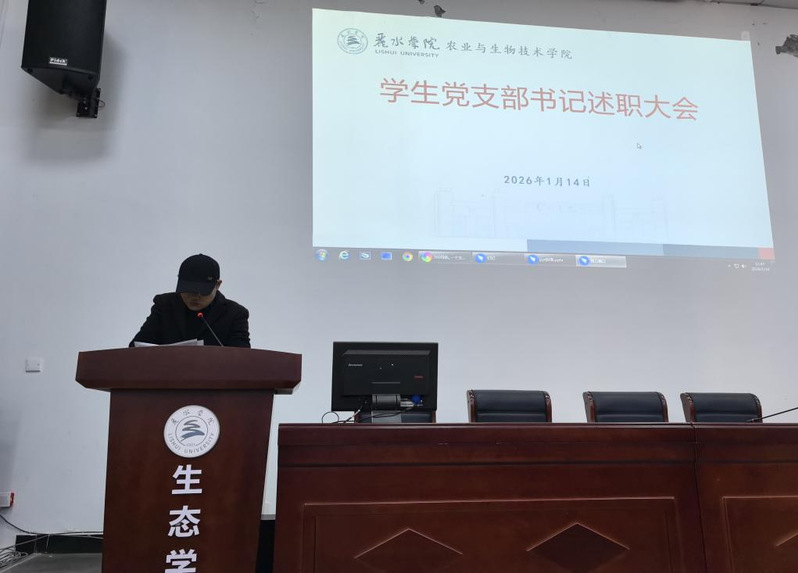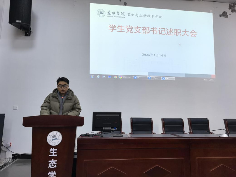 2026年1月14日中午12:30,农业与生物技术学院在12D二阶教室召开2025年度学生党支部书记述职大会。学院组织员杨英、各学生党支部书记、辅导员及全体学生党员参会。