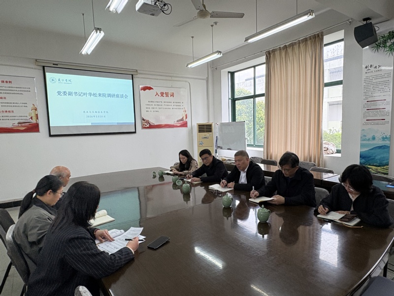 3月31日,校党委副书记叶华松深入农业与生物技术学院,开展听课调研并主持召开座谈会。学生处、团委、宣传部、安全保卫部等相关职能部门负责人陪同调研。