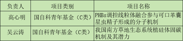 近日,2025年度国家自然科学基金项目立项名单相继揭晓,生态学院青年博士教师高心明、吴云涛分别获得国家自然科学基金青年科学基金(C类)项目立项。为学校高质量发展注入强劲动力!
