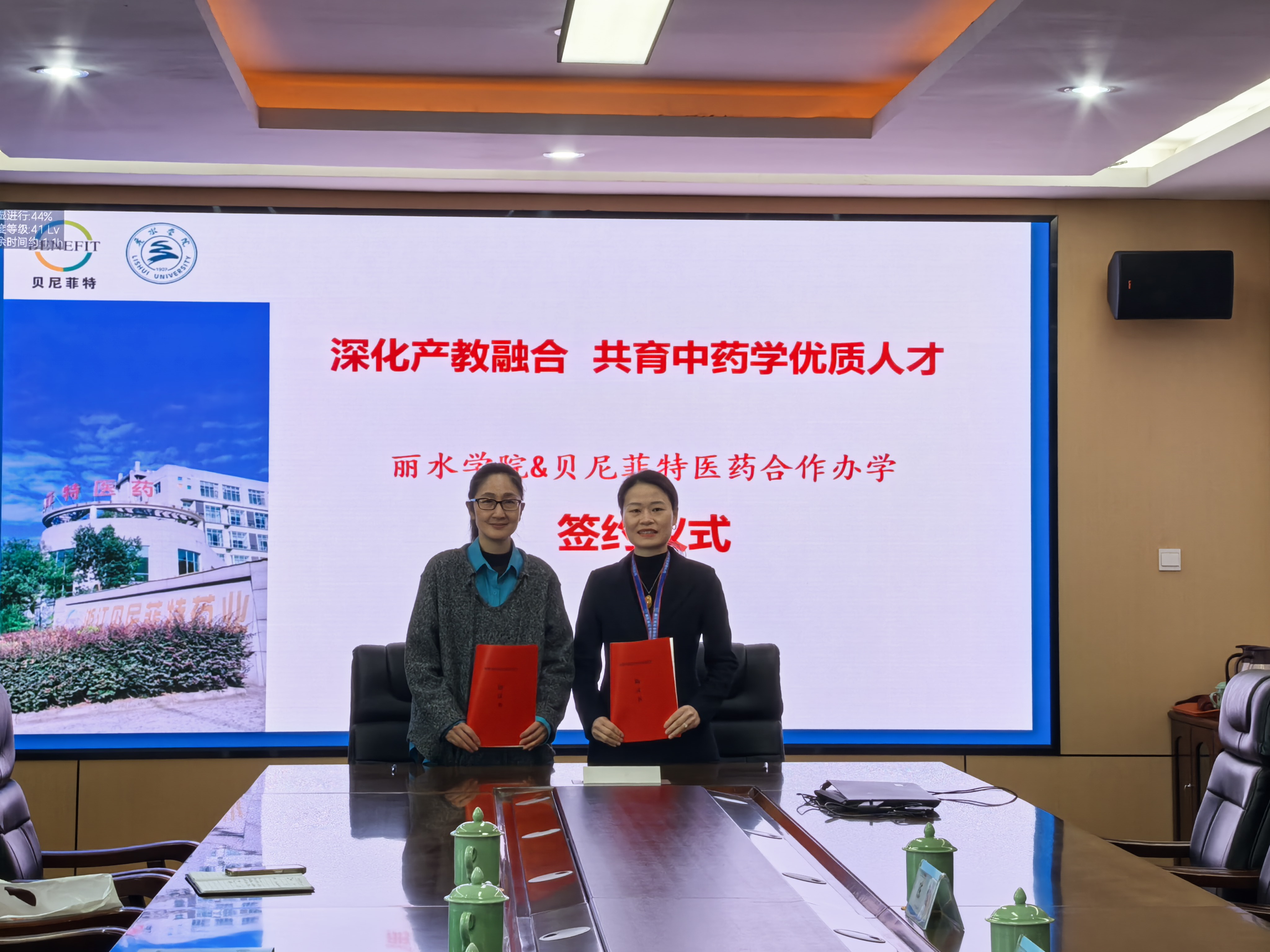 在热烈的掌声中,张燕副院长与张丽云总裁分别代表双方签署了中药学专业共建合作协议。根据协议,双方将在人才共育、基地共建、资源共享和师资互通四个方面展开深度合作。此次合作协议的签订,标志着丽水学院在服务地方大健康产业发展上迈出了坚实一步。