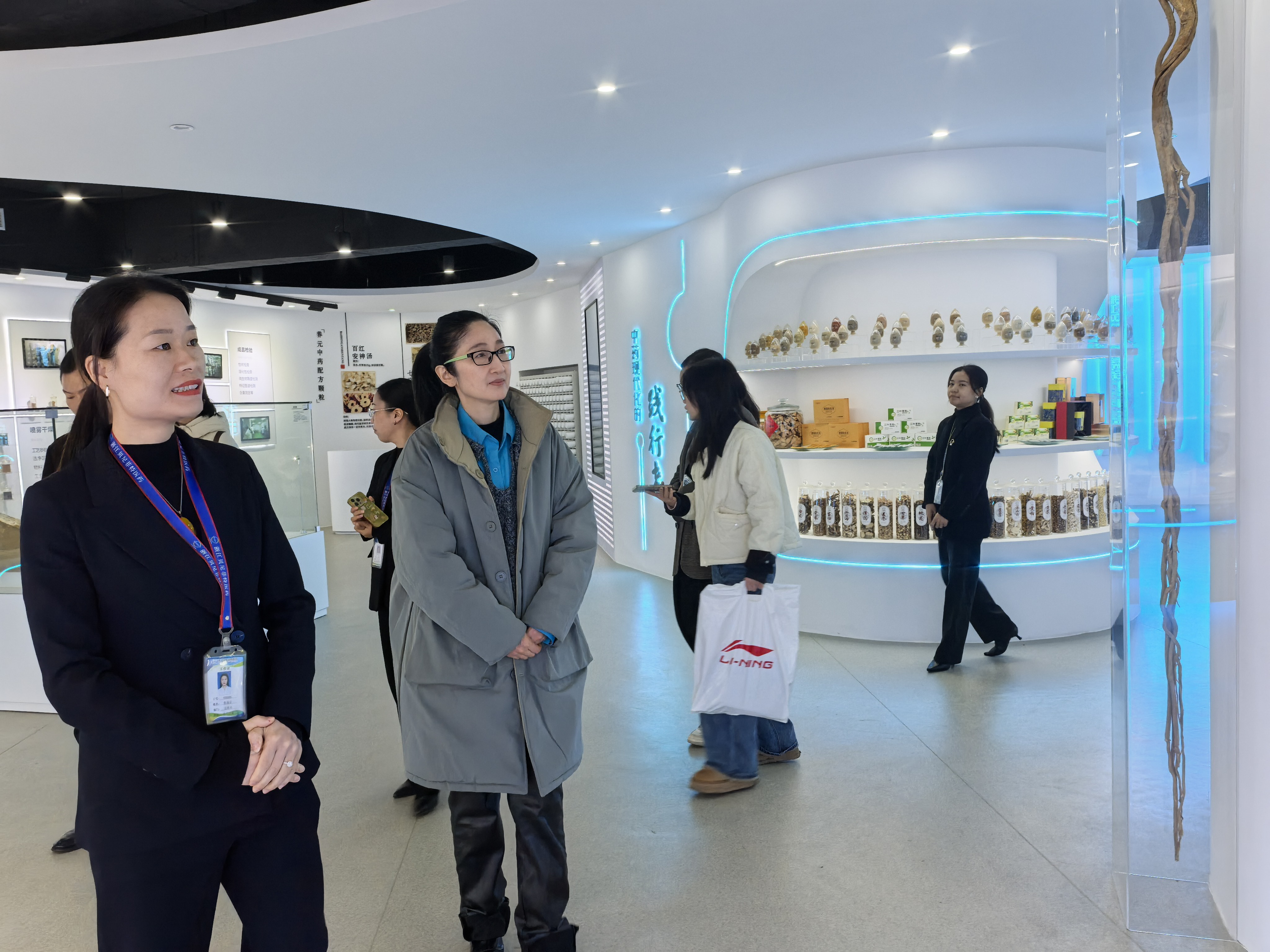 作为丽水地区中药行业的龙头企业,浙江贝尼菲特药业长期专注于中药配方颗粒的研发与生产,拥有先进的生产线和强大的科研转化能力。在张丽云总裁的陪同下,张燕一行首先参观了企业的现代化中药配方颗粒智能化展示中心及企业文化展厅,详细了解了企业在中药炮制、质量控制、产品研发及市场拓展等方面的情况。张丽云总裁在交流中表示,随着中医药大健康产业的快速发展,企业对具备扎实理论基础和实践能力的高素质中药学人才需求日益迫切,期待通过与丽水学院的深度合作,实现教育资源与企业资源的优势互补。