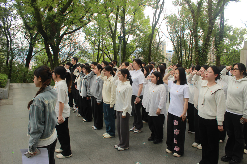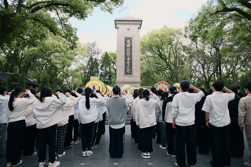 在鲜红的党旗前,全体党员高举右拳,重温入党誓词。“我志愿加入中国共产党,拥护党的纲领……”铿锵有力的誓言在陵园上空回荡,进一步坚定了学生党员不忘初心、牢记使命的理想信念。活动中,黄虹玉同学带领大家学习革命先辈黄富武的英雄事迹,深刻感悟其坚定的理想信念、英勇的斗争精神和无私的奉献品格,从红色历史中汲取奋进力量,传承弘扬浙西南革命精神。