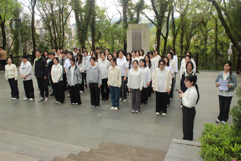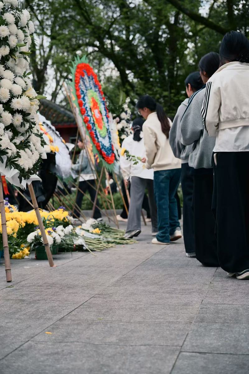 当日下午14时,在杨文琪同学的主持下,祭扫活动庄严开始。全体师生在革命烈士纪念碑前整齐列队,肃立默哀,向为民族独立和人民解放事业英勇献身的革命先烈致以深切缅怀与崇高敬意。随后,学生党员代表向烈士纪念碑敬献鲜花,表达对英烈的无限追思。