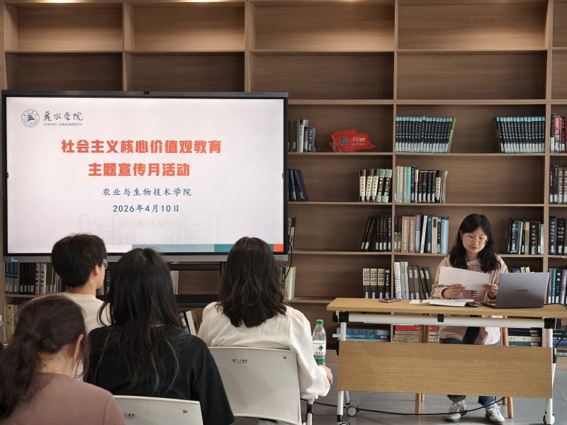 4月10日下午,农业与生物技术学院在图书馆四楼会议室举行社会主义核心价值观教育暨主题宣传月活动。学院党委副书记吴庆红、学生科科长施婷、优秀校友潘俊杰及优秀学生代表共同参加。